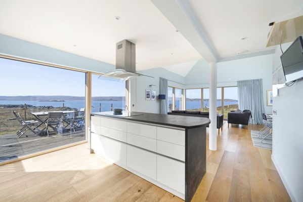 Designed by architect Robin Haddow and completed in 2013, this striking three bedroom home combines modern design with outstanding energy efficiency, set in one of the Scottish Highlands’ most dramatic coastal backdrops.