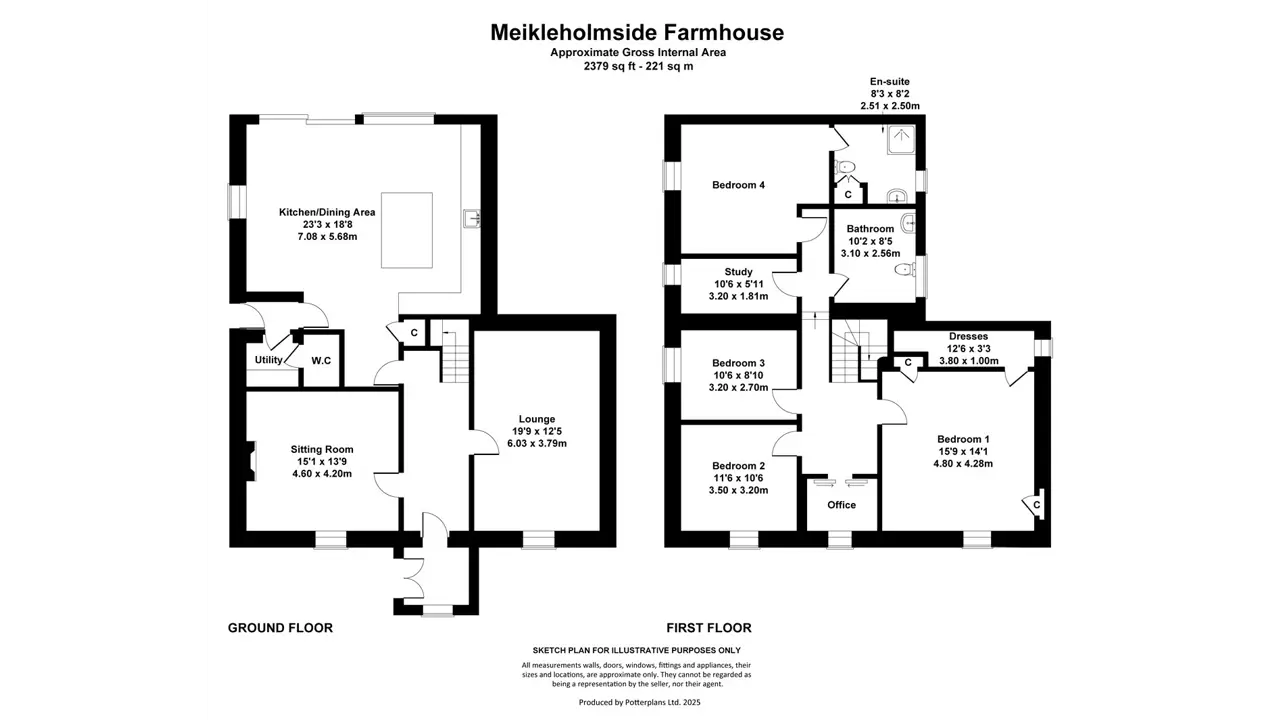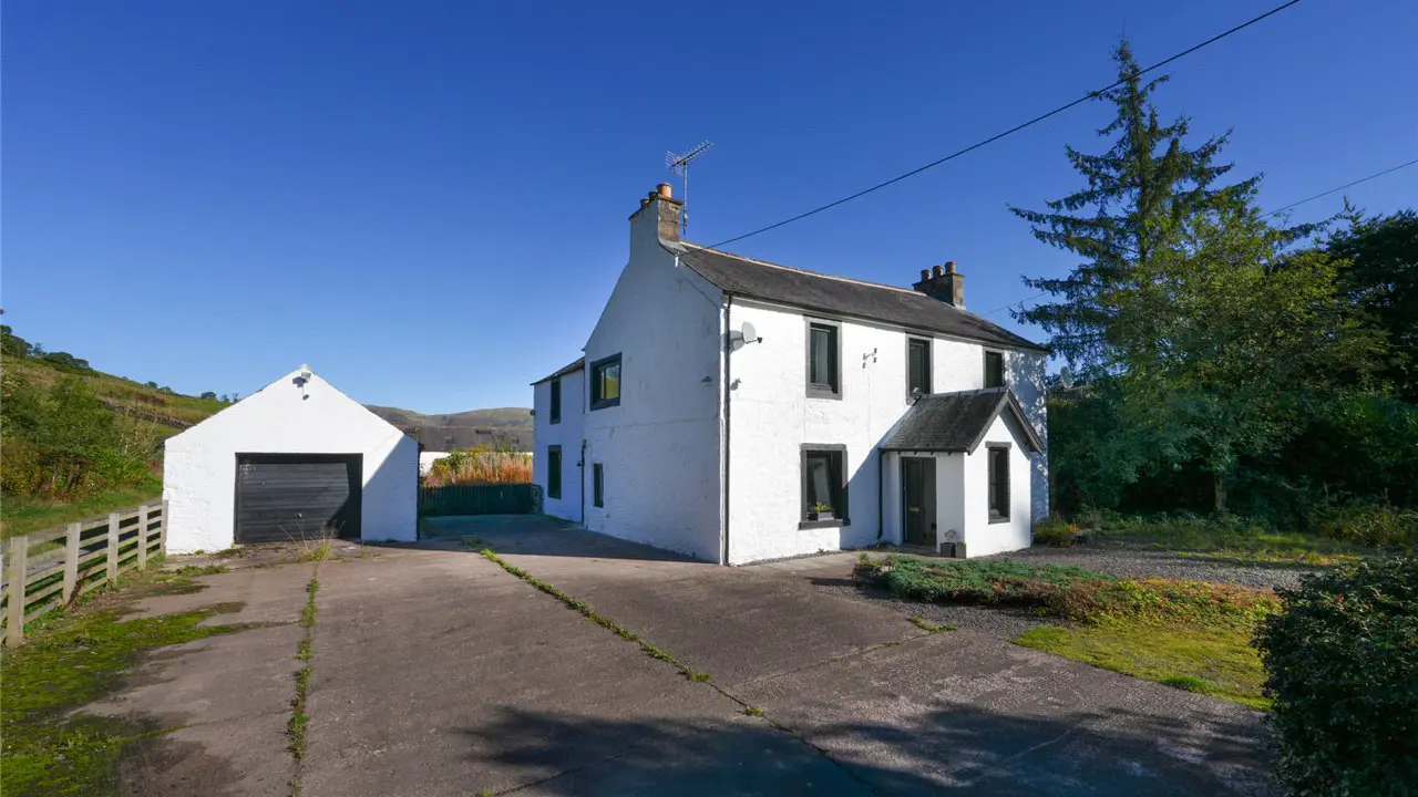 DESCRIPTION Meikleholmside Farmhouse presents an exciting opportunity to acquire a substantial rural property in a truly idyllic setting within the Annan Water Valley, just a short drive from the popular town of Moffat. The farmhouse offers generous and versatile accommodation with significant potential for further development, alongside expansive grounds and a range of traditional outbuildings.The accommodation comprises four bedrooms, including a principal bedroom with en-suite facilities and another with a walk-in cupboard. There are two additional office spaces, ideal for home working or study areas, a bright lounge, and a further sitting room featuring an open fire. The modern dining kitchen is the heart of the home, fitted with a central cooking island and sliding patio doors which open directly onto the courtyard. A utility room with w.c. completes the ground floor.While the kitchen has been updated to a high standard, the remainder of the property provides a blank canvas, offering buyers the opportunity to place their own stamp on this spacious farmhouse.Externally, the grounds extend to an expansive garden, providing ample outdoor space for family living, gardening, or further landscaping. The property also benefits from a range of outbuildings, formerly the original farm steading, which—subject to the necessary planning consents—offer excellent scope for conversion to workshops, additional accommodation, or business use.Services include a private septic tank and mains water supplySITUATION Meikleholmside Farmhouse is nestled within the beautiful Annan Water Valley, surrounded by rolling hills, woodlands, and open farmland. The setting is peaceful and unspoilt, with abundant wildlife and endless opportunities for enjoying the outdoors, whether it be walking, cycling, fishing, or horse riding.Despite its tranquil position, the property is only a short drive from the vibrant town of Moffat, well known for its welcoming community, independent shops, cafés, and local events. Moffat is recognised as Scotland’s first Dark Sky town and first Golden Eagle Town. And is well known as a “walkers’ town,” attracting outdoor enthusiasts while still offering everyday amenities and schooling.The location also benefits from excellent transport connections. The A701 provides a direct route north to Edinburgh, while the nearby M74 gives quick and easy access to Glasgow and Carlisle, making Meikleholmside an attractive choice for those seeking a rural lifestyle without compromising on accessibility.