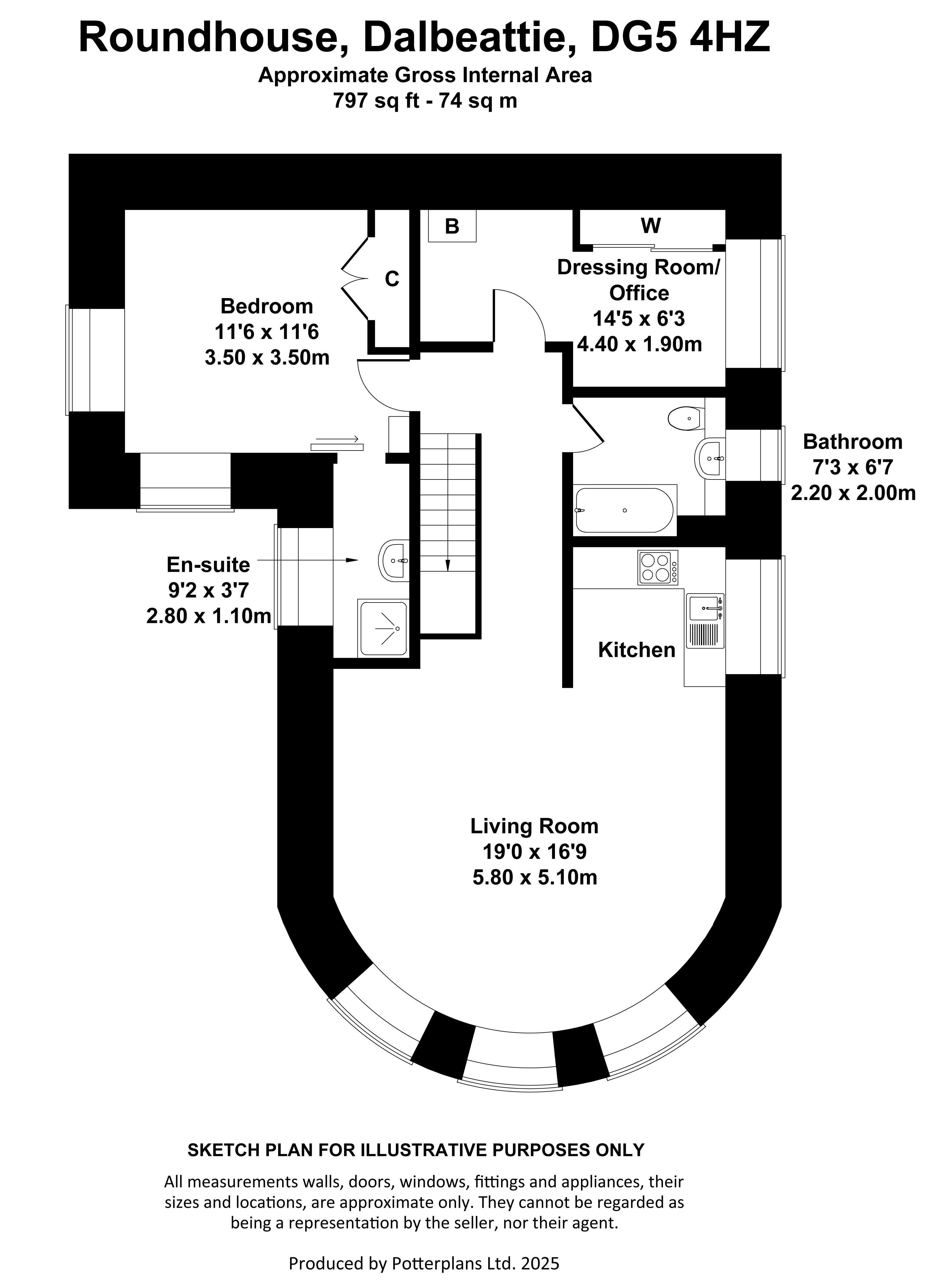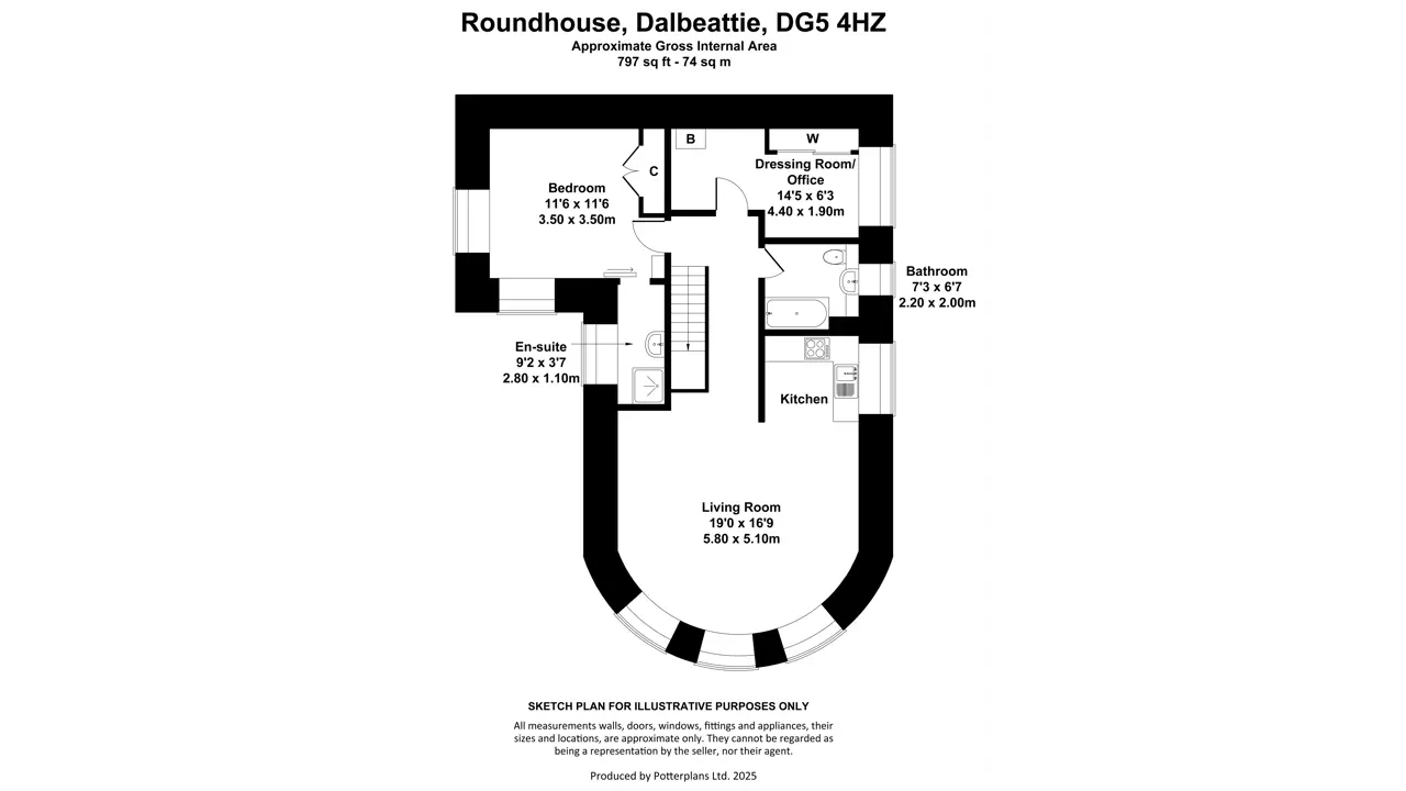 **CLOSING DATE THURSDAY 9TH OCTOBER AT 12 NOON**SITUATION The Roundhouse sits at the heart of the popular town of Dalbeattie. Dalbeattie nestles in the valley of the River Urr, the name means “valley of the silver birch”. The town has a thriving and friendly community with a good range of shops, small supermarkets, cafes, hotels, restaurants. The town also has award winning butchers, a veterinary surgery, nursery, primary and secondary schools in a state of the art education campus, a museum, solicitors, a dental practice and a health centre. In addition there is a selection of sporting facilities including a park with boating lake, a bowling green, an active tennis club, football club and facilities, as well as a nine-hole golf course. In the summer months a Civic programme runs a variety of events enjoyed by the local community and visitors alike. The nearby market town of Castle Douglas, known as Dumfries & Galloway’s Food Town, also provides a variety of shops, two larger supermarkets, health services, pool and leisure facilities, veterinary services, and a thriving livestock market. Dumfries which is approximately 13 miles distant and is the principal town in the area which provides a wider range of schools, shops, retail outlets, and other services including a major hospital, the Dumfries and Galloway Royal Infirmary. Dumfries is home to the Crichton campuses of both Glasgow University and the University of the West of Scotland. Communications to the area are good. There are mainline railway stations in both Dumfries and Lockerbie, providing excellent links to both the north and south. The M74 motorway network is 42 miles distant, and there are regular flights to other parts of the UK, Ireland and Continental Europe from Prestwick Airport 63 miles north, and Edinburgh and Glasgow both 96 miles.DESCRIPTION Roundhouse is a unique, stylish apartment within one of the most unique buildings in Dalbeattie with a striking rounded exterior. Roundhouse has been fully renovated by the current owners and has been finished to the highest standard. The modern open plan kitchen, dining & living space showcases the property features, be it the high ceilings or the 3 large sash and case style windows, flooding the room with light, shaped around the rounded elevation. The redesign by the current owners has utilised the space available within this striking building, but with a modern twist. The modern, newly fitted kitchen boasts a worktop induction hob with extractor over, integrated wine fridge and fitted ‘Quooker’ tap with ample space for freestanding fridge/freezer. The kitchen seamlessly connects to the dining/living space, an adaptable bright space that can be adapted to suit the specific needs from the layout. LED lighting further enhances the space and provides a quirky “change up” to your typical lighting. A bespoke shelving area provides an attractive feature. The parquet flooring is of solid oak and adds great character to the space together with durability. The master bedroom is a delightful space with two large windows, each with electric controlled fitted blinds, hidden storage space and a delightful ensuite with waterfall shower. The current dressing room has a newly fitted range of Sharp wardrobes and provides ample space for a home office, it could also accommodate a small bed. In addition a utility area housing the boiler and with space & plumbing for washing machine/drier. The bathroom of modern finish completes the accommodation space. Additional highlights include, keyless entry system, modern Worcester Bosch boiler, upgraded insulation and new double glazed windows throughout. The exposed ceiling height and additional roof lights give a greater sense of space and enhance the natural light. The property is chain free and move in ready, perfect for a first-time buyer, professional or investor seeking a turnkey home. ACCOMMODATION Entrance on the Ground Floor with Cloakroom area, stairs rising to:First Floor: Open Plan Living/Dining/Kitchen. Bathroom. Master Bedroom. Shower En Suite. Dressing Room. COMMERCIAL PREMISES Premises below also available and under same ownership. Seller would consider a sale of both The Round House & the commercial unit below. POST CODE DG5 4HZ WHAT3WORDSTo find this property location to within 3 metres, download and use What3Words and enter the following 3 words: slung.tunnel.milky