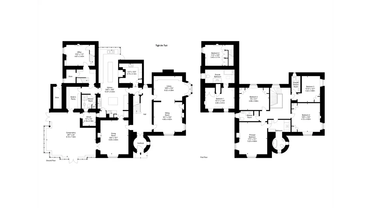 SITUATIONTigh An Tuir sits within the sought after conservation village of Strathtay in the county of Perthshire. Strathtay, lying to the north of the River Tay, is a delightful village with village shop, churches and golf club. Originally a small estate hamlet, Strathtay blossomed into the village of today with the advent of the railway line in the 19th Century and includes a number of fine Victorian houses sitting within sizeable and, established gardens, with Tigh an Tuir being one. Within a short walking distance of Strathtay is the village of Grandtully which benefits from a primary school, chocolatier shop, café, village hall and restaurants.Aberfeldy, a popular and highly sought after town, is about a 12-minute drive to the south west and offers further amenities including a small supermarket, primary and secondary schooling at Breadalbane Academy, local independent retailers, variety of cafes and restaurants, health centre and a cinema. Breadalbane Academy Community Campus has a wide range of facilities available to the community including a swimming pool, fitness classes, sports hall and gym. Pitlochry, about 9 miles distant, offers similar facilities to Aberfeldy but also includes the Pitlochry Festival Theatre and railway station, with regular services north and south as well as the London Sleeper service. In addition, some 12 miles south is the Royal Burgh of Dunkeld with independent retailers and railway station.The city of Perth is conveniently accessible via the A9 southbound and offers a wider range of amenities including national retailers, theatre, concert hall, museums and sporting facilities including a curling rink and swimming pool. Dundee can be reached in about an 1 hour journey by car to the south east with excellent city facilities including two universities, V&A Museum, shopping centres and Olympia swimming pool together with Discovery Point, the home of RRS Discovery, the famous ship of Robert Falcon Scott and Ernest Shackleton and an airport which offers flights to London.Tigh an Tuir is ideally placed for the wide range of recreational activities the surrounding area has to offer. For the golfer there are a number of courses within easy reach including a 9 hole course in Strathtay itself, a 9 hole course in Aberfeldy and 18 hole course in Pitlochry as well as the Gleneagles Hotel to the south offering 3 championship courses. Perth Racecourse holds regular meets throughout the year and the ski slopes of Glenshee can be reached in about an hour’s car journey to the north. For the outdoor enthusiast there are many hills, glens and mountains within the area offering a superb variety of walking and cycling routes with Loch Tay providing excellent water sport facilities. In addition, Highland Perthshire is amongst the most famous in Scotland for traditional sporting. The River Tay flows just to the south of Tigh an Tuir where salmon fishing is available whilst Glenlyon, Scotland longest glen, located to the south west, is renowned for stalking and grouse shooting.LOT 1Tigh an TuirTigh An Tuir is a most attractive Victorian Villa presented to an extremely high standard and lying within extensive and well maintained gardens and grounds. It is substantially built of stone lying under a pitched slate roof with a turret and traditional sash and case windows.On entering Tigh an Tuir, the delightful charm of the house is evident immediately. The rooms are well proportioned, light and bright with high ceilings and tall windows complemented by the fine period features throughout including polished wooden floors, fine cornicing, panelled doors and a wooden staircase.The reception rooms are reached directly from the staircase hall with its galleried landing. They have been finished to an exceptionally high standard with a combination of contemporary and period fixtures and features. The elegant dining room enjoys a southerly outlook over the garden and continues through to the generous conservatory which opens out onto the terrace, giving a perfect place for outdoor dining and the hosting of friends and family. The sitting room, known by the current owners as The Den, is a smart reception room centred on an open fire with mantlepiece.Lying to the north side of the house is the breakfasting kitchen, with a door leading directly outside and with a part glazed ceiling, is a wonderfully light and bright room. It benefits from a four oven Range Cooker, fitted floor and wall cupboards and a number of integrated appliances. A door leads directly off the kitchen giving access to the office, scullery, laundry Room, cloakroom and storage cupboards.The bedrooms all lie on the first floor. The principal bedroom is well-proportioned bedroom with ensuite bathroom with free standing bath located within the turret of the property. There are an additional 3 double bedrooms; one with an ensuite and two with a sink, and a family bathroom. The final two bedrooms, one equipped with an ensuite, can be accessed via secondary staircases at the rear of the property.Ground Floor: Entrance Hall, Dining Room, Conservatory, Sitting Room, Kitchen, Hall, WC, Scullery, Laundry Room, Storage Cupboard, Office.First Floor (reached by principal staircase): Bedroom 1 with Ensuite, Bedroom 2, Bedroom 3, Bedroom 4 with Ensuite, Family Bathroom.First Floor (reached by secondary staircase): Bedroom 5 with Jack and Jill Bathroom, Bedroom 6.Gardens and GroundsTigh an Tuir sits within beautiful and well-tended gardens and grounds, extending to about 5.12 acres and providing a most established and in-keeping backdrop to this period house. Beautiful wrought iron electric gates give access to the sweeping drive leading to a gravelled parking area to the side of the principal house, with further parking to the rear.The gardens and grounds have been very well maintained and developed over many years with sweeping lawns, fine rhododendrons, specimen trees and hedging, together with well stocked borders and extensive spri
