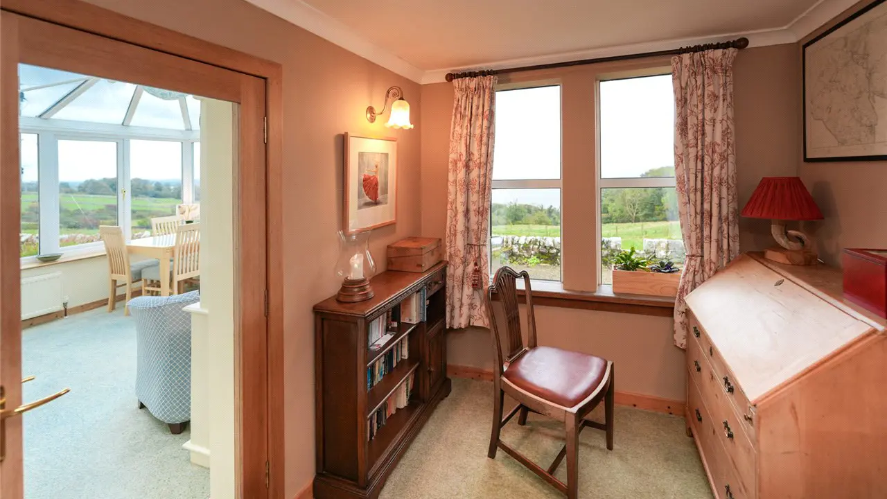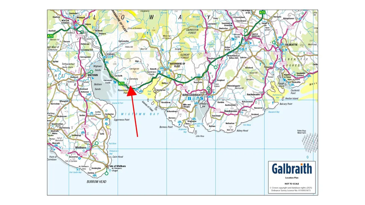 SITUATION Holecroft is situated in a peaceful rural area with stunning far reaching coastal views just a short distance from the sought after small town of Gatehouse. Gatehouse has a good range of local facilities including a primary school, hotels, chemist, doctor’s surgery, coffee shops, postal service and two small supermarkets. A wider range of services can be found in the surrounding towns of Kirkcudbright, Castle Douglas and Newton Stewart.The area is renowned for its outdoor pursuits, with walking and mountain bike trails in the numerous forests including the Seven Stanes range. The nearest of these is Kirroughtree, which has a large visitor centre and cycle shop. Golf enthusiasts are very well catered for throughout the region, and there is a 9 hole course on the edge of the town, as well as an 18 hole course available in the grounds of the Cally Palace Hotel on the outskirts. Water sports and adventures await on nearby Loch Ken, and the area’s rivers and lochs provide good opportunities for salmon, sea trout and trout fishing. Equestrian pursuits are popular with several schools and livery yards available. The harbour town of Kirkcudbright is known as Scotland’s Artist Town, and has a blue-flag awarded marina. There are also sandy, picturesque beaches within close proximity at Sandgreen and Mossyard.There are good communications to the area with regular flights to London and mainland Europe from Prestwick Airport 65 miles north, and Glasgow and Edinburgh Airports, 101 and 117 miles respectively. There is a mainline Railway Station in Dumfries (36 miles) and the M74 Motorway network is 59 miles to the east.DESCRIPTION Nestled in an idyllic countryside setting, this exceptional rural property offers the perfect blend of privacy, space and breathtaking scenery. Set on generous grounds, the home boasts panoramic coastal views that stretch across open farmland to the sea beyond, a stunning backdrop for everyday life. The property lies to the front of the site, originally dating from the 1700s but been extended and altered through the years. The house full of charm yet thoughtfully updated for comfortable modern living, a spacious open plan Kitchen & dining space is at the heart of the home with Rayburn offering not only a centrepiece feature but means of cooking and warmth to the home fuelling central heating and hot water. The space provides a delightful social space ideal for family living. To the front of the property a delightful living room with wood burning stove, windows to the front frame the stunning coastal views. A stunning conservatory offers a relaxing space to absorb panoramic sea views to the front with door providing direct access to the front garden. Adjoining is a delightful space, currently used as a study/home office perfect for those requiring to work from home, yet can still enjoy the outlook. A further reception space, again with coastal views to the front or garden to side could also serve as a fourth bedroom. To the first floor 2 double bedrooms, one have fitted wardrobes. A third slightly smaller bedroom with fitted wardrobes. All with delightful views over farmland and Wigtown Bay beyond. A bathroom with walk in shower completes the first-floor accommodation. The property Is heated by way of oil central heating from the Rayburn, together with wood burning stove in the living room and double glazing throughout. Water is from a private spring and drainage to a private septic tank, which all title rights exist for maintenance access and upkeep. Elevated within the grounds are a range of useful outbuildings, ideal for workshops, storage or conversion potential (subject to planning). Whether seeking hobby space, smallholding venture or animal shelter, these buildings offer great potential. The majority are of stone construction with slate roof, two newer additions adjoining are of profile metal sheet construction. One utilised as a car port, the other additional storage space. The grounds included with Holecroft are a particular highlight. Bound by dry stone dyke predominantly and with ease of access from a vehicular gate or additional pedestrian gates. Access directly from the rear of one of the outbuildings. Could be used for grazing or self-sufficiency projects. Holecroft offers a rare opportunity to purchase a rural haven offering privacy, yet still within easy reach of local amenities, schools and transport links. The perfect location for those looking to embrace a peaceful countryside lifestyle property. ACCOMMODATION Ground Floor: Boot Room/Utility. Kitchen/Dining. Pantry. Living Room. Reception Room/Bedroom. Conservatory. W.C.First Floor:Bedroom. Bathroom with Shower. Bedroom. Bedroom. OUTBUILDINGSThere is a range of traditional buildings of stone construction with slate roof. Two further open fronted profile metal sheet buildings adjoining. GARDEN Accessed from the public road over a gravel driveway with ample parking and access to the outbuildings and down to the property. Gardens wrap around the property with lawns to the front and side with some mature trees and shrubs. To the rear a paddock wraps around the outbuildings. Predominantly bound by dry stone dyke with gate access to the paddock from the driveway, mature trees and shrub on the boundary enhance the privacy of the site. A patio area to the rear provides a delightful spot to relax and dine al fresco. Grounds extend to about 1.3 acres in all.