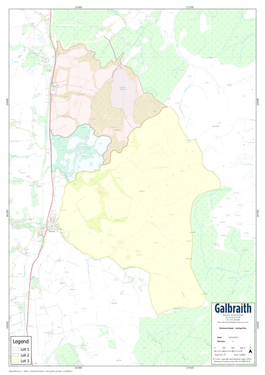 SituationPortmore Estate is situated in a most private and highly scenic rural setting, a short distance from the village of Eddleston and about 5 miles to the north of Peebles in the Scottish Borders. Eddleston is a delightful conservation village with a thriving community with a primary school, village hall and the Horseshoe Inn. The historical Royal Burgh of Peebles, on the River Tweed, offers an extensive range of services including independent retailers, supermarkets, banks, medical centre and both primary and secondary schools.Portmore Estate is highly commutable to Edinburgh. Situated some 18 miles to the north of Portmore, with the city centre reached in about a 45 minute journey by car, Edinburgh offers a wealth of amenities including a wide variety of retail outlets, restaurants, museums, art galleries and 3 universities. Home to the Edinburgh Festival and the Fringe, the city has numerous theatre and concert hall venues. Its international airport reaches destinations throughout Europe and North America, whilst the Waverley Railway Station provides daily services north and south including the London Sleeper service. Edinburgh has a number of independent schools offering both primary and secondary schooling. St Mary’s Preparatory School is found at Melrose, lying about 29 miles to the south-east.The Scottish Borders is a county of gentle rolling countryside comprising fertile arable land, grassland, woodlands and hills, with the Tweed river system running through it, renowned for its excellent salmon fishing. The county has had a vibrant history including that of the Border Reivers and associated fortresses and castles and was renowned for its great woollen textile industry which still forms a major contribution to the local economy. The county offers a wealth of recreational activities including shooting, fishing, hill walking, mountain biking and for the golfer, a number of excellent courses including the Peebles Golf Club. The Scottish Borders has a strong equestrian identity which continues today with racing at Kelso. There are also Rugby Clubs in a number of the local towns. The nationally renowned Borders Book Festival, which has been running for 20 years, is hosted annually in Melrose.DescriptionPortmore Estate is a highly desirable Scottish Estate extending to some 3,459 acres (1,400 hectares). Centred on Portmore House, a Category A-Listed country house, the estate sits within beautiful and well-tended policies with restored walled garden and Victorian glasshouse, a parterre, parkland fields, mature deciduous woodlands, farmland and hill ground, together with the reservoir to the north. The estate provides great seclusion and amenity, nestled discreetly in the rolling Borders countryside. The farming enterprise is run from Boreland Farm, which lies to the south of Portmore House and includes a farmhouse, cottage and practical range of modern and traditional farm buildings. The highly regarded pheasant shoot, which ran for many years, has very recently ceased following the retirement of the keeper. In addition to a lower ground floor flat within Portmore House, there are five further residential dwellings on the estate; Primrose Cottage (Gardener’s House), Hillhead Cottage (Keeper’s House), Portmore Lodge and both 1 & 3 Skiprig CottagesMethod of SalePortmore Estate is presented in 3 Lots. However, it is only available to purchase in the following packages:-• Lot 1• Lot 1 & 2• As whole (Lots 1, 2 & 3)Please note that Lots 2 and 3 are not available to purchase individually or as Lots 1 & 3 together.Lot 1Portmore House, Portmore Lodge, Primrose Cottage, Hillhead Cottage and Land (Extending in total to 274 acres, 111 hectares)Portmore HousePortmore House is a Category A-Listed Scots baronial house built in 1850 and designed by the Scottish architect, David Bryce. Constructed of red sandstone under a principally slated roof with lead additions, it has a central tower together with turrets on the western elevation, crow step gables and sash and case windows. The South Wing was partially rebuilt following a fire in the 1980s. Portmore House offers well-proportioned rooms which are light and bright with a wealth of period of features including wood panelling, fine cornicing, panelled doors and fireplaces and the original organ in the hall.Portmore House provides beautiful principal reception rooms and extensive bedroom accommodation with a most welcoming kitchen with practical ancillary rooms. The accommodation extends to a billiard room on the lower ground floor, a playroom and a 2-bedroomed caretaker’s flat. Adjoining the principal house is a practical range of outbuildings lying to the north with a partly covered cobbled courtyard adjacent. The accommodation of Portmore House lies over three principal floors comprising:-Ground Floor: Hall, Organ Room, Drawing Room, Library, Dining Room, Kitchen, Sitting Room, Pantry, Laundry, Cloakroom, Boot room, Ancillary Room, Annex Bedroom Wing (2 Bedrooms and Shower Room)First Floor: Principal Bedroom Suite with Dressing Room, Bathroom, Walk in Wardrobe, Shower Room, Store Cupboard, Bedroom 2 with En-suite, Bedroom 7 with En-suite, 7 further Bedrooms, 5 further Bathrooms.Reached by a secondary staircase from the Ancillary Room on the ground floor is a Guest Annex providing Sitting Room, Bedroom, BathroomSecond Floor: Bedroom 11 Lower Ground Floor: Billiard Room, 5 Bedrooms, Bathroom, Playroom, Cloakroom, Two Wine Cellars, Store Room 1, Boiler Room, Store Room 2, Generator Room, Store Room 3In addition there is a two bedroom flat within Portmore House on the lower ground floor. It can be accessed directly from the lower ground floor and via its own independent access. It provides the following accommodation: Hall, Store Room, Sitting Room, Kitchen, Snug/Study, Bedroom 1 with En-suite Shower Room, Bedroom 2, Bathroom.Gardens and GroundsThe gardens at Portmore are a notable feature of the estate having been carefully restored 